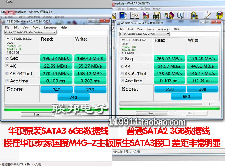 SATA 6Gbps数据线测试成绩
