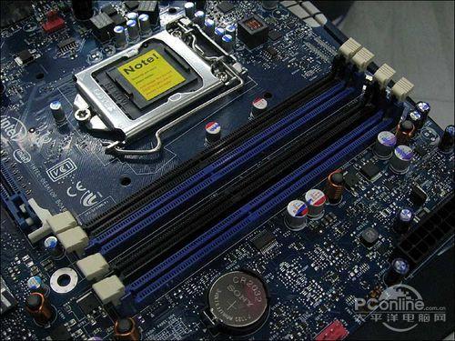 Intel DP55WB提供了4条DDR3内存插槽,可以支持双通道DDR3 1066/1333MHz内存,较强的2相供电设计,也可以提供较强的内存超频性能。扩展方面,提供了1条PCI-E 2.0 16X显卡插槽,以及PCI-E 2.0 8X和PCI-E 2.0 4X插槽各1条,PCI-E 1X插槽和PCI插槽各2条,为用户提供了足够的扩展空间,并且还支持双显卡SLI和交火功能。