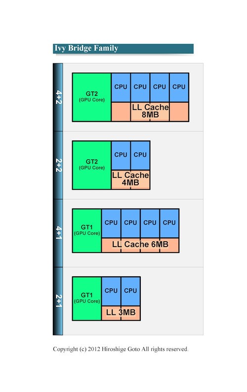 —Ivy Bridge采用22nm 3D Tri-Gate晶体管制程工艺和模块化设计,包括4种组合:4个CPU核心+8MB缓存+GT2图形核心,2个CPU核心+4MB缓存+GT2图形核心,4个CPU核心+6MB缓存+GT1图形核心,2个CPU核心+4MB缓存+GT1图形核心。或许Ivy Bridge的图形性能最高程度比前几天友站超能网曝光的还要强一些?