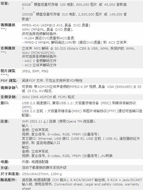 - 可作为多媒体硬盘使用,可存储超过310部电影4