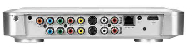 爱可视 TV+多媒体硬盘录像机机身设计不大,只有250×164×37mm,重仅1294g,由于面向家庭使用,它也没有支持高清输出,而是采用S-Video、复合与分量音视频输入输出,不过它为了日后可支持到高清,到是预留出了HDMI高清视频输出接口。另外爱可视WIFI TV+还置有以太网接口。