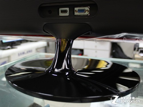 S27B370液晶显示器拥有黑色钢琴漆工艺底座,而搭配同样颜色的脖颈虽然没有太多奢华之处,但浑然一体的感觉使人们看起来更为舒服。在脖颈上方我们可以看到辅助机身调节功能的倒三角支架,方便了用户操作。