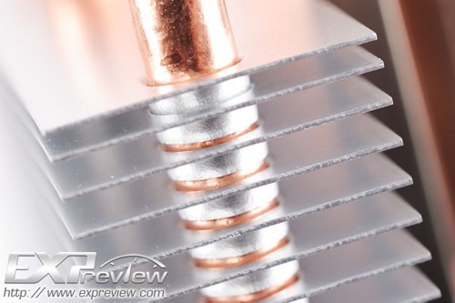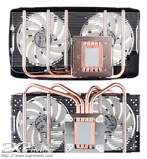 [/url] 热管数量从4根增加到5根,导热能力更强,热管的走向也有所改变,从上图可以清楚看到,在结构上最大的变化在于热管的走向发生了重要改变,Twin Turbo Pro(下)热管的弯曲处是在上方的,而Twin Turbo II(上)热管的弯曲处是在下方。