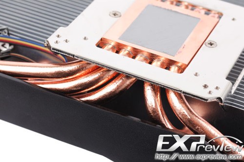 Twin Turob II在结构上也有所变化,热管弯曲处置于下方,这样能避免与显存散热片冲突,提供更好的兼容性,而且一定程度上可以改善性能,这个小小的改动非常值得称赞。