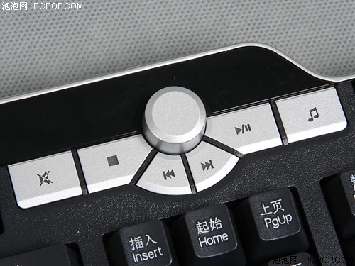 银色的按键并排排列,有静音、停止、前进/后退、播放/暂停、音乐软件开启键等等,而最特别的就是它的音量调节键,被设计成了单键飞梭,这样大大方便了音量的调节。