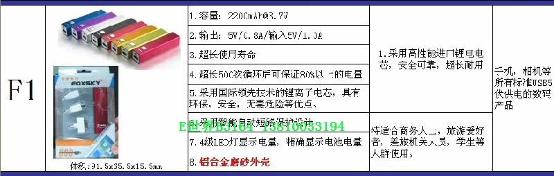 富登移动电源万能充电器会议礼品手机相机充电器高性能锂电2200mA