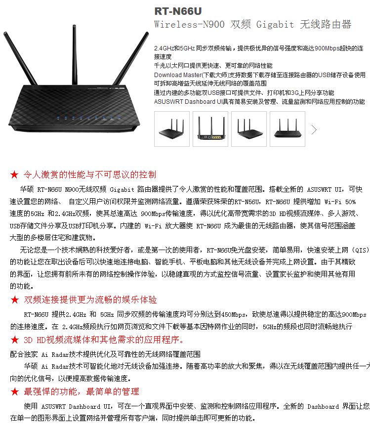 华硕旗舰路由器 ASUS RT-N66U N900 双频千兆脱机,你能想到的都有了...