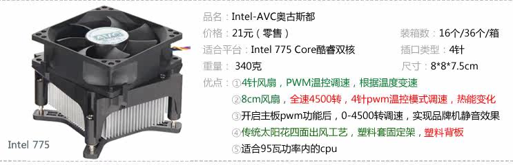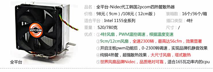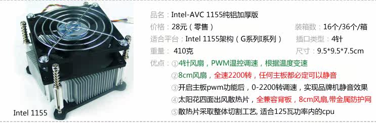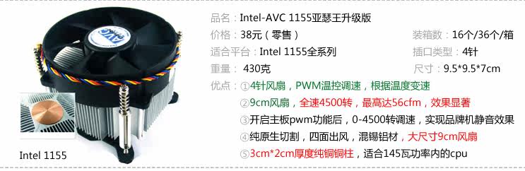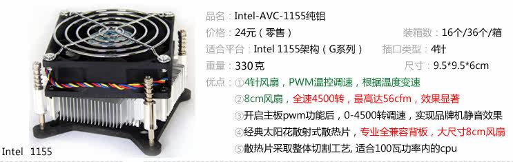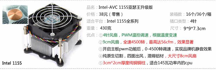 风扇扇叶 | 4 PIN智能温控风扇(PWM),完全符合Intel的38度机箱温度限制标准 |