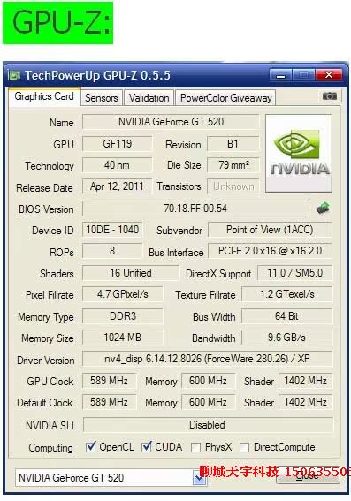 盈驰科技推出的这款英伟达GT520高清游戏显卡,真实1024M,不是共享 ,价格实惠,性价比高,适合普通家用升级独立显卡,能够对付一般大型3D游戏;流畅播放高清电影!绝对是对游戏性能要求不是特别特别高的升级