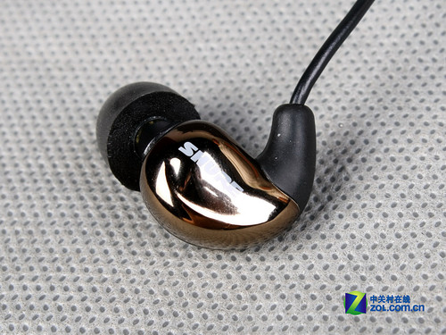 舒尔SE530入耳式耳塞细节 舒尔SE530在造型上酷似一颗“豆”,弯曲的设计更能贴合使用者的耳朵。和其他动铁耳塞不同,SE530的外观采用高光材质,手感颇佳,但这一定程度上也会很难避免指纹的侵害。另外,目前MP3、MP4普及度很高,为了方便用户户外使用,SE530特地采用了短线加延长线的设计,线材的质地柔软,完美不用担心老款舒尔“裂线”的问题。