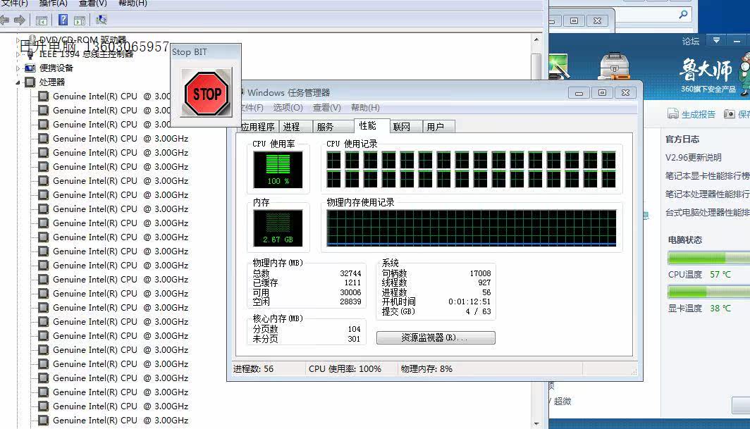 再上几张效果图看看。是实物拍。看CPU核心都恐怖的不得了的机器