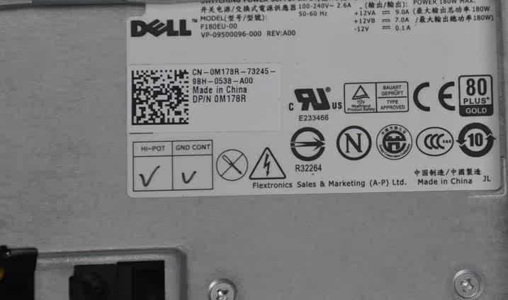 别看这个机器电源小功率可不小这么小小一个电源可有180W是很强的