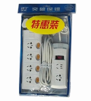![]() | 2.热动能过载保护: 如因不了解电器负载功率,造成插座所联结的电器总功率超过额定功率(2500W),则突 破的热动能过载保护装置将自行切断电路,杜绝因电线过热产生的电气火灾隐患。 突破的热动能过载保护装置均具备安全认证,并经TOP实验室严格检测,反应灵敏,可重复使用,无需更换保险丝或保险管,便捷安全。 3. 如意开关系统: 每位插孔均配备单独开关,您可以自由定义电器的工作状态,想开就开,相关就关,一切随意;只开启您需要的电器插孔开关,不会增加其他电器的待机功耗,可以有效节约电能; 选用优质长寿开关,即使频繁使用,也无需担心开关损坏。 |
