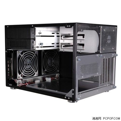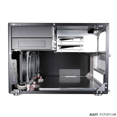 联力闻名的产品大多以铝合金打造而成,除了它拥有良好的散热特性外,在经过联力的独特加工技术处理后,内部无割手的组件,也有保金属光泽的外观,而重要的是,铝合金是一种可以回收的金属,对地球环境不会照成更多的伤害。 机箱内部有2个5.25英寸槽,3个3.25英寸槽(1个外露,2个内藏),4个扩展槽,适用的主板规格包括Micro ATX / Mini ITX。机箱可安装两个风扇,前置的2个12cm风扇和后置的1个8cm风扇。接口方面包括2个USB接口,音频输入输出接口和1个IEEE1394接口。