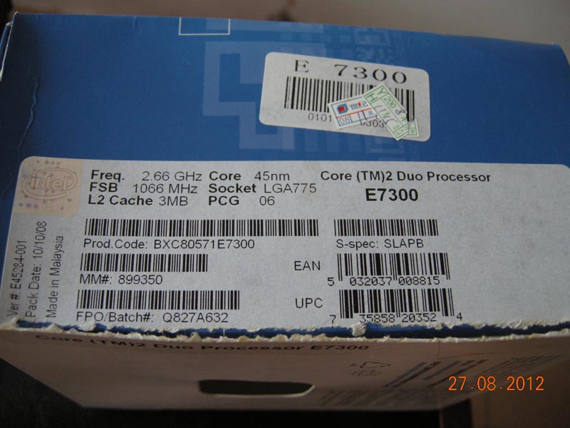 出自用联强盒装E7300 MO步进,盒子 风扇 说明书都在。CPU从没超过频,CPU盖有点花,但不影响使用保证稳定。秒价350元包快递淘宝交易。