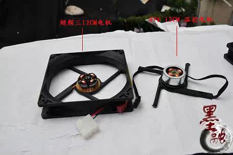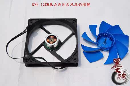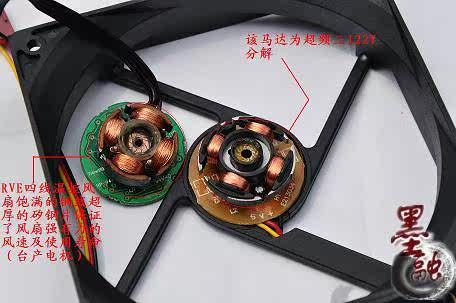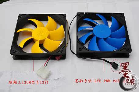 上图为RVE PWM 四线风扇 与大家国内熟知的散热品牌超频三 旋风F122Y的风扇外观对比.