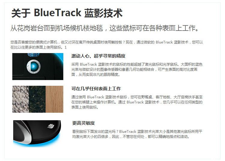 。 上图是这款鼠标的特性(卖点)提要,大品牌在考虑客户需求的时候非常全面,是不是各项都符合您的需求?其实微软的品牌就是整体品质的保证,刚上市时候卖¥299的价格,就知道这款不是什么廉价的入门级产品,现在¥50元不到,还不抢?本以下是技术细节,不感兴趣的客户直接看下面的实物拍。