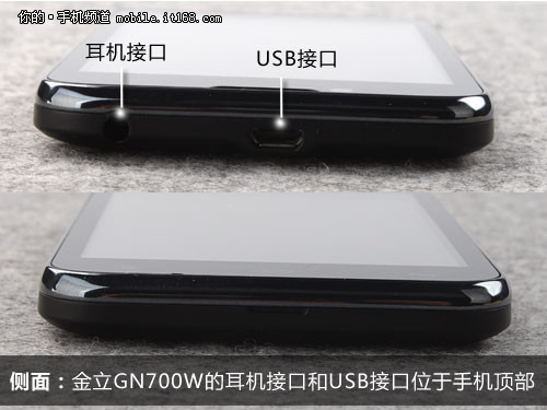 金立GN700W风华的[url=]耳机[/url]接口和USB接口都在手机的顶部,手机的底部没有任何的接口。