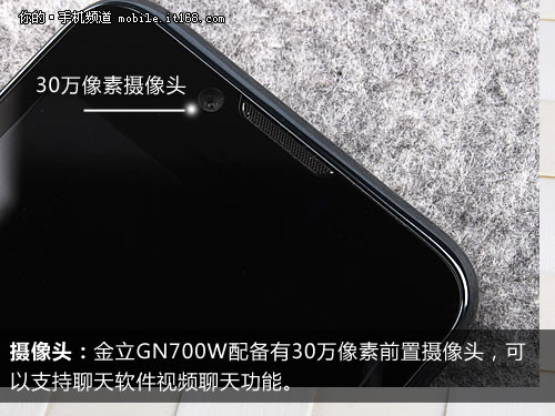 金立GN700W提供30万像素的前置摄像头,可以支持视频通话和聊天软件视频聊天功能。