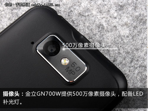金立GN700W风华提供500万像素摄像头,而且更有LED[url=]闪光灯[/url],500万像素摄像头在实际测试中也有发非常好的拍摄效果。