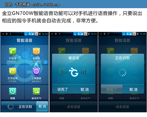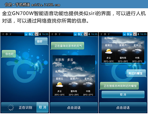 金立GN700W风华提供智能语音功能非常实用,可以通过语音命令来控制手机,同时也有类似siri的人机对话界面,可以为用户提供非常丰富的信息。
