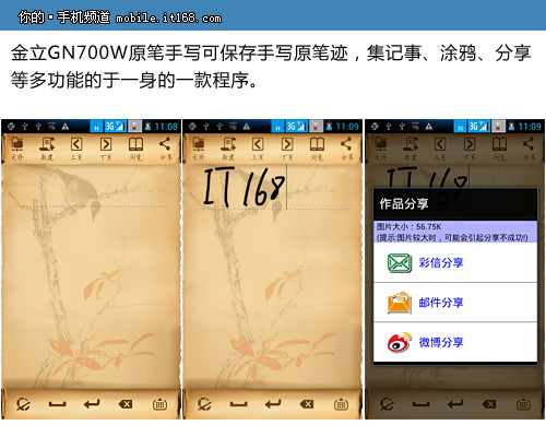 金立GN700W风华提供有原笔手写功能,可以保留手写笔迹,更可以将写下来的东西保存和分享,这个功能也是非常实用。
