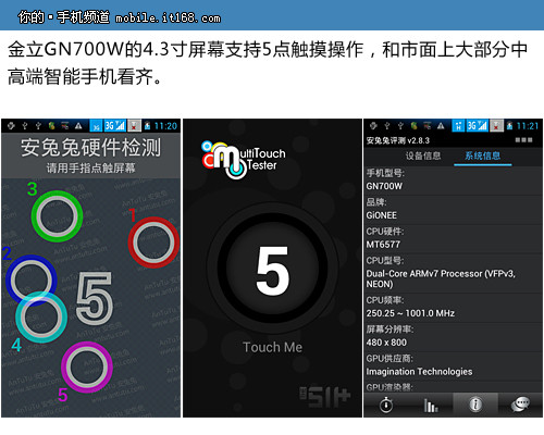 金立GN700W风华的屏幕支持多点触控操作,从测试可以看到金立GN700W风华支持5点触控操作。