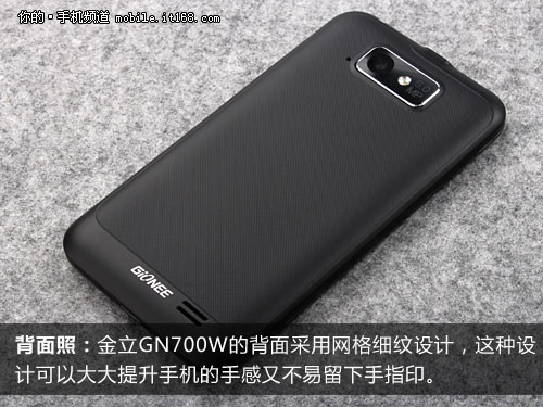 金立GN700W风华的背面采用细纹网格设计,这种设计不容易留下指纹,而且拥有非常好的手感,看上去也显得更高档。
