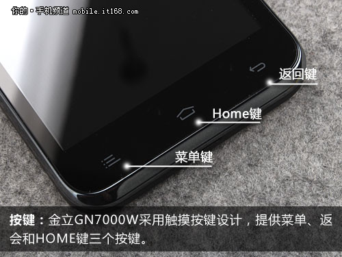 金立GN700W风华提供了菜单、Home和返回三个按键,触摸按键设计使得机身更为简洁。