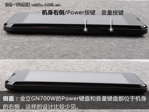 金立GN700W风华的Power按键和音量按键都在[url=]手机[/url]的右侧,这样设计很少见,实际的操作起来可以用一只手指控制Power按键和音量按键,操作更加方便。