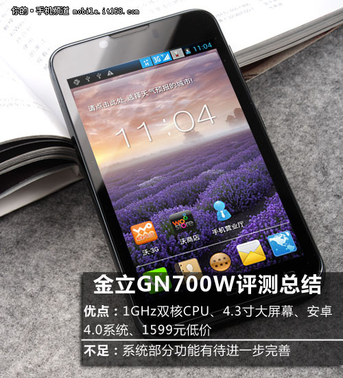 购买建议:金立GN700W风华具有很高的性价比,双核1G的[url=]CPU[/url]、4.3寸大屏、安卓4.0系统,非常适合对手机性能有追求而预算有限的用户。