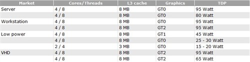 Intel Xeon E3-1200 V3规格完整曝光