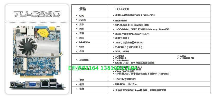 | 内存 | 1xSO-DIMM,DDR3 1333MHz Memory,Max.4GB |