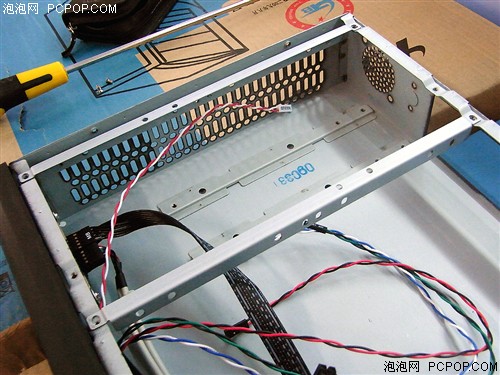 七喜大水牛S0205机箱内部 七喜大水牛S0205机箱只能使用miscoATX主板和薄型的CPU散热器,电源也只能算是够用,但是考虑到HTPC也没什么升级需求,这样倒是一劳永逸了。