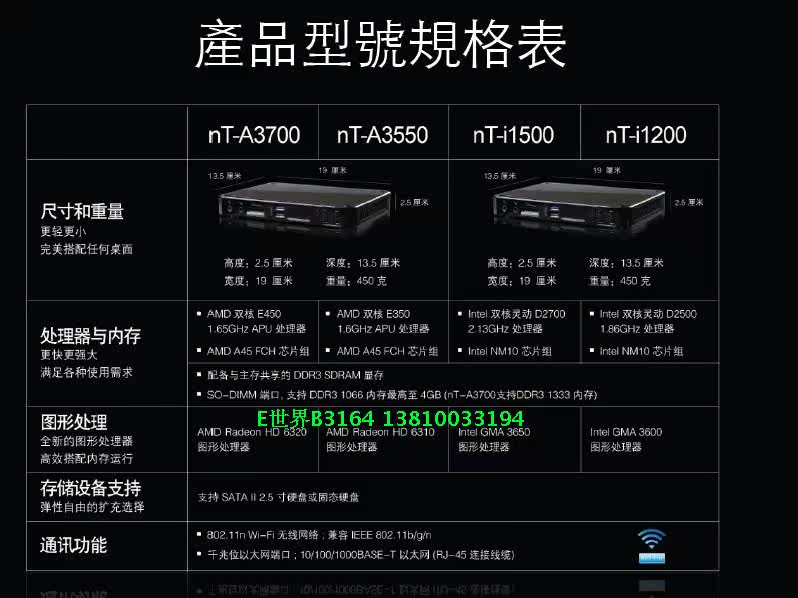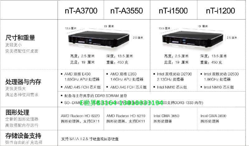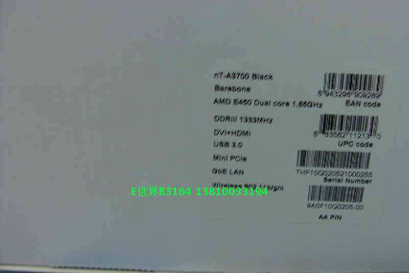 注:本款为富士康nt-A3700,为AMD E450 双核1.65GHz APU(nt-A3500是E350),显卡为AMD Radeon HD 6320(nt-A3500是HD6310);本款相比原来几款迷你主机把无线天线内置了,并且多一个mini PCIe插槽,客户可以根据自己要求来添加,或者做双网卡无线路由。不带内存和硬盘1580元,量大直接VIP电话13810033194
