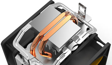 ![]() | 2X6mm热管 超频三黄海增强版采用了2根6mm的热管来增强导热性能,保证对CPU的散热性能,是中端CPU散热首选! |