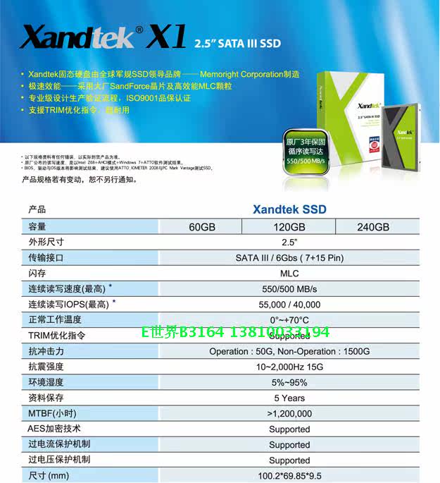 读写500M蓝科/Xandtek/2.5寸固态硬盘120G高速SSD建达蓝德代理GZ540元送架子