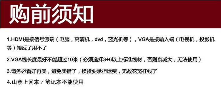 小窍门:高清机顶盒使用此款线材,需把机顶盒设置为HDMI输出,把显示器设置为VGA模式方可使用哦。机顶盒使用可不是即插即用的哦,客官注意了。(因高清机顶盒种类品牌繁多,可能会出现个别无法输出的,如遇到此种情况,请先保持线材的干净,并及时与我们售后联系哦)