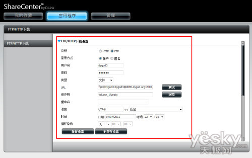 NAS初期作为一个存储设备登上了网络设备的舞台,网络存储作为可以替换传统[url=]硬盘[/url]或阵列更加方便的备份方式一直在企业级用户中广受推广,面对于普通的家庭用户可能确实用处甚微,毕竟简单的[url=]移动硬盘[/url]已经基本满足了家庭备份的需要。时间推移使得各种下载技术频出,大量的网络资源不断通过HTTP、[url=]FTP[/url]协议得到下载,BT作为网络传播不可或缺的下载方式也逐步普及开,因此NAS也发生了一些改变,从网络存储的企业身段,摇身一变成为了灵巧的家庭脱机下载工具。从此拥有NAS的朋友可以借助其下载控件,脱机自由下载网络资源。 今天为各位朋友带来的一款能够支持HTTP、FTP、P2P协议的NAS来自于世界知名网络设备供应商,长年有着丰富的网络设备制造经验D-Link,其产品自然实力不俗,不但能够支持各种协议的下载,同时仍然能够作为[url=]网络备份[/url]使用。 五大特点: 1.能够通过Internet和内网安全共享资源 D-Link DNS-320使用SATA驱动器,可以如同普通硬盘盒一样通过内网网络驱动盘方式进行存取文件。并且内置了FTP[url=]服务器[/url],对外网可以成为一个FTP服务器。极大程度的方便了资源的安全共享。 2.可脱机下载 喜欢下载的朋友可以摆脱整夜开电脑下载的噩梦,通过DNS-320的内建下载协议进行方便的下载,在有效节省电力的同时也减少了整夜开机带来的噪音。 3.安全的备份功能 作为网络存储备份功能仍然是其核心重点,多达四种不同的硬盘组合模式,全面保证用户备份资源的可靠性和安全性。特别是RAID 1模式,如同阵列硬盘一样镜像的将数据备份到两个硬盘中,避免了一个硬盘损坏后留下的遗憾。 4.D-Link的绿色技术 为了降低能源消耗成本,并帮助减少对环境的损害,这款NAS采用了环保替代品,从而有效的再生利用材料。并且在硬盘驱动器的[url=]电源[/url]管理和智能风扇转速上都采用了智能控制,从而降低了能源功耗,减少了噪音,延长了硬盘寿命。 5.多种设备的支持功能内建[url=]iTunes[/url]/UPnP AV服务器,能够支持PlayStation、Xbox360播放高清影片。配备的[url=]USB接口[/url],也能接入各种外接设备进行远程存取、打印、播放。 D-Link DNS-320网络NAS通体采用考究钢琴烤漆,整个机身一体成型,黑色的机身作为时?械溲诺纳杓评砟钅芄皇视Π俅畹募揖臃绺瘛W笊辖荢hareCenter是其共享精神的核心内容。[url=] [/url]D-Link DNS-320正面[url=] [/url]D-Link DNS-320背面 另外应对与普通的便携存储设备,包括[url=]移动硬盘[/url]、[url=]U盘[/url]等,D-Link DNS-320网络NAS在前面板中配备了[url=]USB[/url]接入口,方便的通过接口可以将USB设备接入到网络中,方便远程存取、打印、播放。并且配备了便捷的一键复制技术,通过[url=]USB接口[/url]右侧的按钮,一键即可将U盘中的数据直接复制进NAS中。 [url=] [/url]前置USB接口和一键复制按键 D-Link DNS-320网络NAS采用[url=]有线[/url]方式接入网络,以便于更稳定、无辐射的传输数据,当网络配置正确时,数据接口将会绿灯闪烁。[url=] [/url]后部接口、RESET键 应对与SATA[url=]硬盘[/url]产生的极大热量,D-Link NAS在后部设置了高速风扇,快速将NAS内的热量排出NAS中。[url=] [/url]智能调速风扇 通过后部的卡口可以通过滑?欠绞酱蚩狽AS。[url=] [/url][url=]硬盘[/url]盖卡口 整个D-Link DNS-320可以装载2个[url=]2TB[/url]SATA口硬盘,两个硬盘都通过NAS两侧?慕鹗艋?酪圆迦敕绞浇尤隢AS。 [url=] [/url]插入硬盘[url=] [/url]NAS内部布局 内部的壁体全部采用能够快速导热的金属材质,方便快速吸收硬盘上的热量传输到位于后部的散热扇上。[url=] [/url]金属导热盒壁D-Link DNS-320网络NAS提供了便捷的存取共享功能,不同于普通的网络NAS,其还提供了内置的[url=]FTP[/url][url=]服务器[/url],使得内容共享功能不会仅限于局域网内,Internet中的许可用户可以通过FTP协议方便的下载此存储中的资源。类似于普通[url=]路由器[/url]的管理界面,D-Link NAS也装配了安全、人性化的管理界面,能够快速从Internet或局域网接入。 首先我们来详细安装并且配置一下这款产品。由于笔者拿到的是国际版本,因此界面是英语的,目前中文版本的正在制作,相信不久即可上市。笔者这里使用了D-Link为本次评测特意提供的汉化包。 [url=] [/url]启动安装向导 请正确打开[url=]硬盘[/url]舱盖,并且放入硬盘。D-Link DNS-320最大能够支持4G的容量。 [url=] [/url] [url=] [/url]按图示装入硬盘 确保NAS和您的计算机在同一个局域网中并且在同一个工作组中,这样安装程序即可自动检索到硬盘。 [url=] [/url] [url=] [/url] [url=] [/url] [url=] [/url]按需求配置基本网络 相信广大朋友一般会在局域网中使用D-Link DNS-320,但是其仍然配置了DDNS服务,由此可以映射自己网络NAS的动态ip地址到一个固定的域名上,通过这个域名即可远程访问自己的NAS。在配置过程中,请确保DDNS服务端口能通过路由器映射出去。 [url=] [/url] [url=] [/url]配置DDNS服务器 随后是NTP服务器与E-mail服务器的设置,有严谨工作需求和安全要求的用户可以通过NTP服务器精确自己NAS的时间,通过E-mail服务器监控运行状态,这里不?龉?嗌柚昧恕? [url=] [/url] [url=] [/url]配置NTP和E-mail服务器 识别到硬盘组以后可以为硬盘设置盘符,标志NEW表示未进行格式化的新硬盘。安装程序会自动将硬盘作为盘符映射到“我的电脑”中进行显示,使得用户可以像使用普通硬盘一样使用网络NAS。 关于四种不同的硬盘组合模式(标准Standard