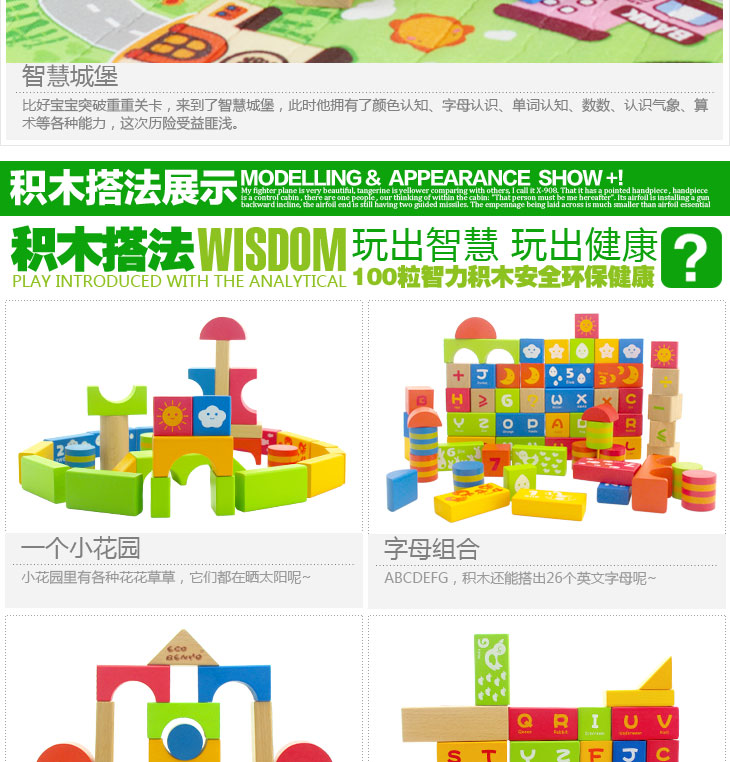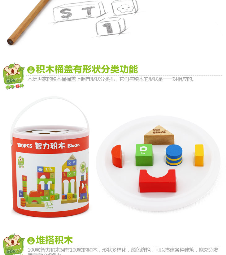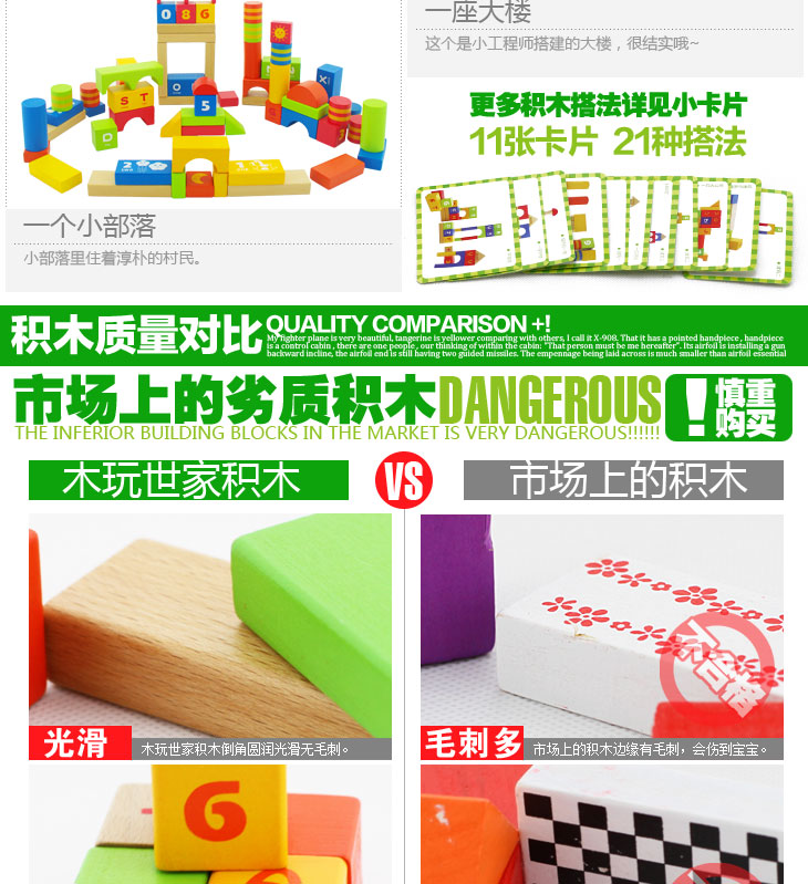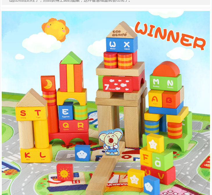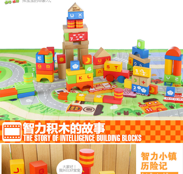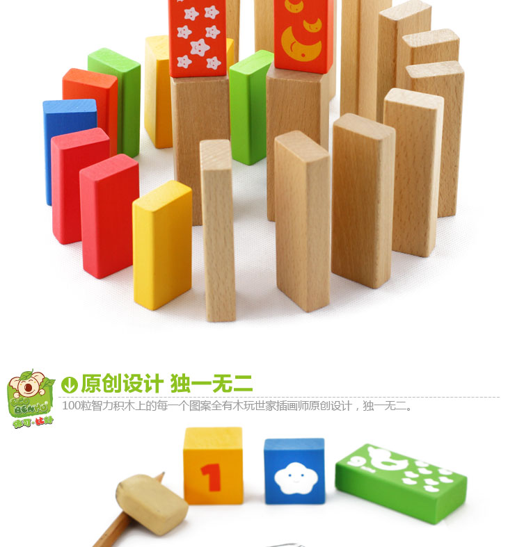 木玩世家正品热卖儿童益智100粒木质大块积木木制玩具 89元包邮
