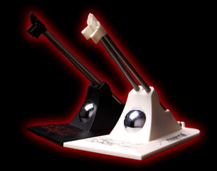 线夹的底座为硬塑料制成,而夹线部分则是不锈钢弹簧,这样的设计可以使用户方便的调节鼠标线的角度,而且分量十足,不易被鼠标拖动