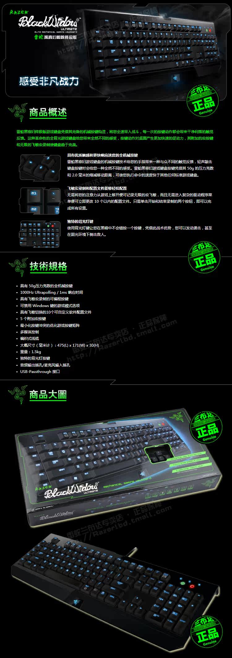 包顺丰 Razer/雷蛇 黑寡妇蜘蛛 终极/2013电竞游戏键盘 机械键盘