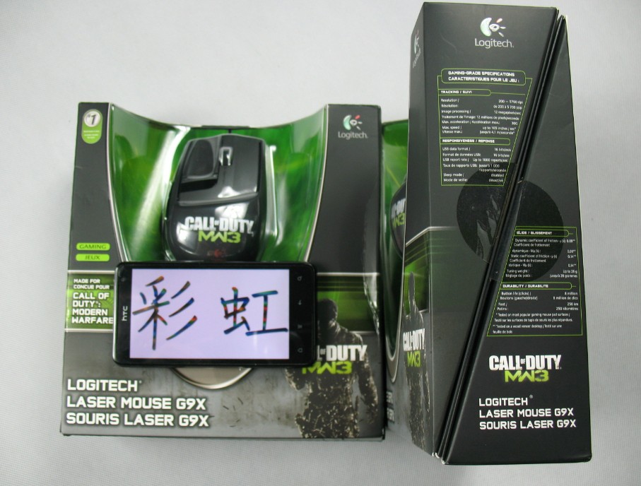 Logitech罗技G9X是顶级的游戏鼠标,采用USB有线接口、激光引擎、200-5700dpi可调、MicroGear™高精度滚轮、支持重量微调。G9X的其他特色包括自定义LED灯颜色、5组自定义配置,并提供两种Wide Load和Precision自定义外壳适合不同人群需要,7个可编程按键。MW3限定版的G9X是伴随着Call of Duty: Modern Warfare 3(使命召唤:现代战争3)推出的限定版,鼠标主体带有Call of Duty: MW3字样。对于爱好COD系列尤其是MW系列的玩家来说,这款鼠标无疑是你征战沙场的利器,另外包装内含一只使命召唤主题鼠标垫,全球限量发售,非常有价值!