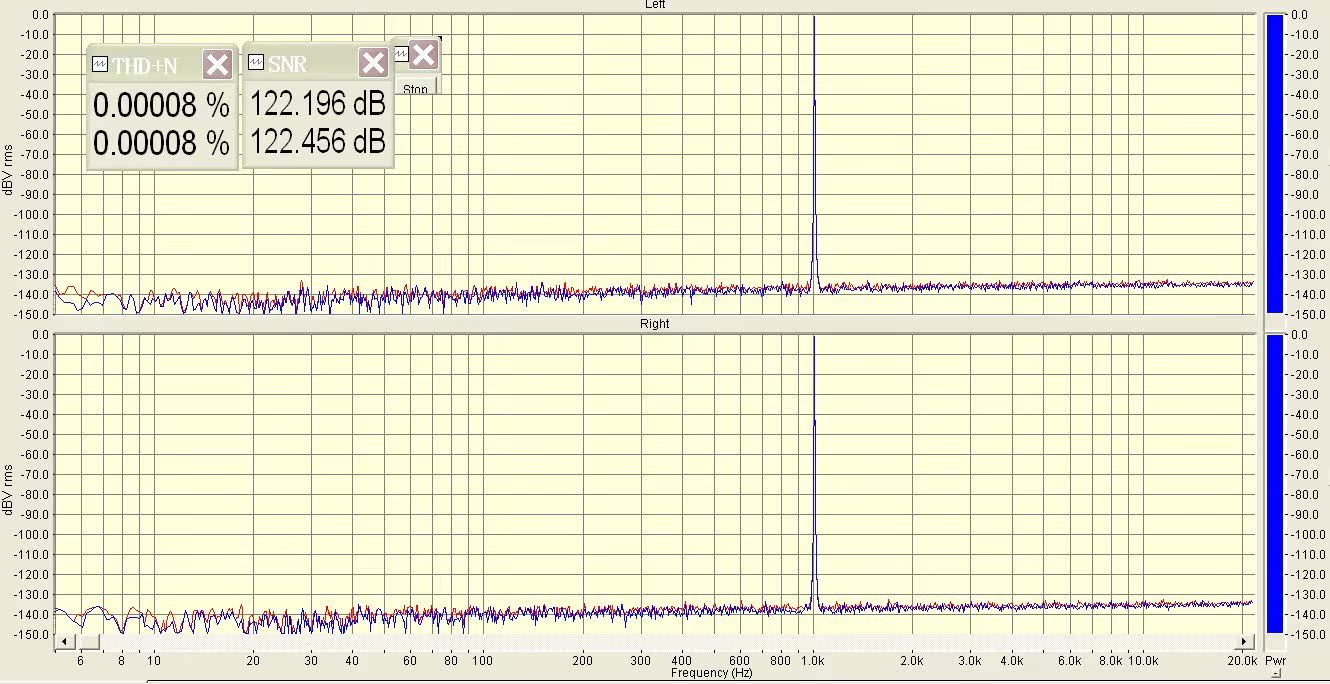 测试条件:USB线连接到CM6631A子卡,引出的同轴信号再回送到EMU-1616的同轴输入接口。