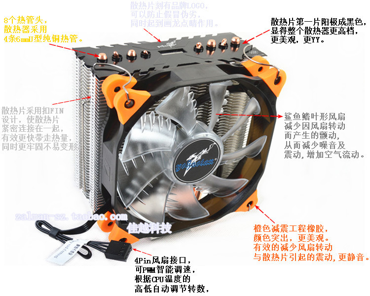 热管与散热鳍片采用穿Fin工艺,在此价位一般都不可能采用焊接工艺,其他散热器品牌也一样。