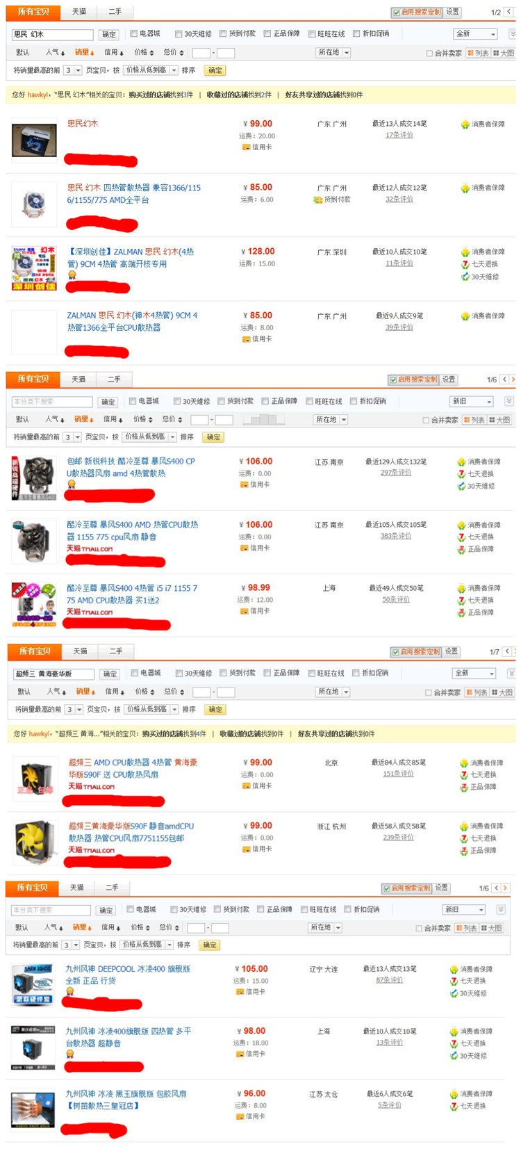 先来看看其他品牌的4热管9cm风扇的淘宝价格