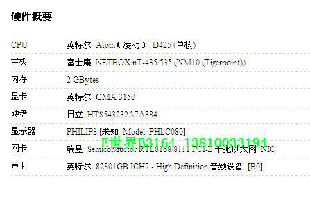 | 处理器支持 | Intel D425 Single core 1.8GHz Intel |