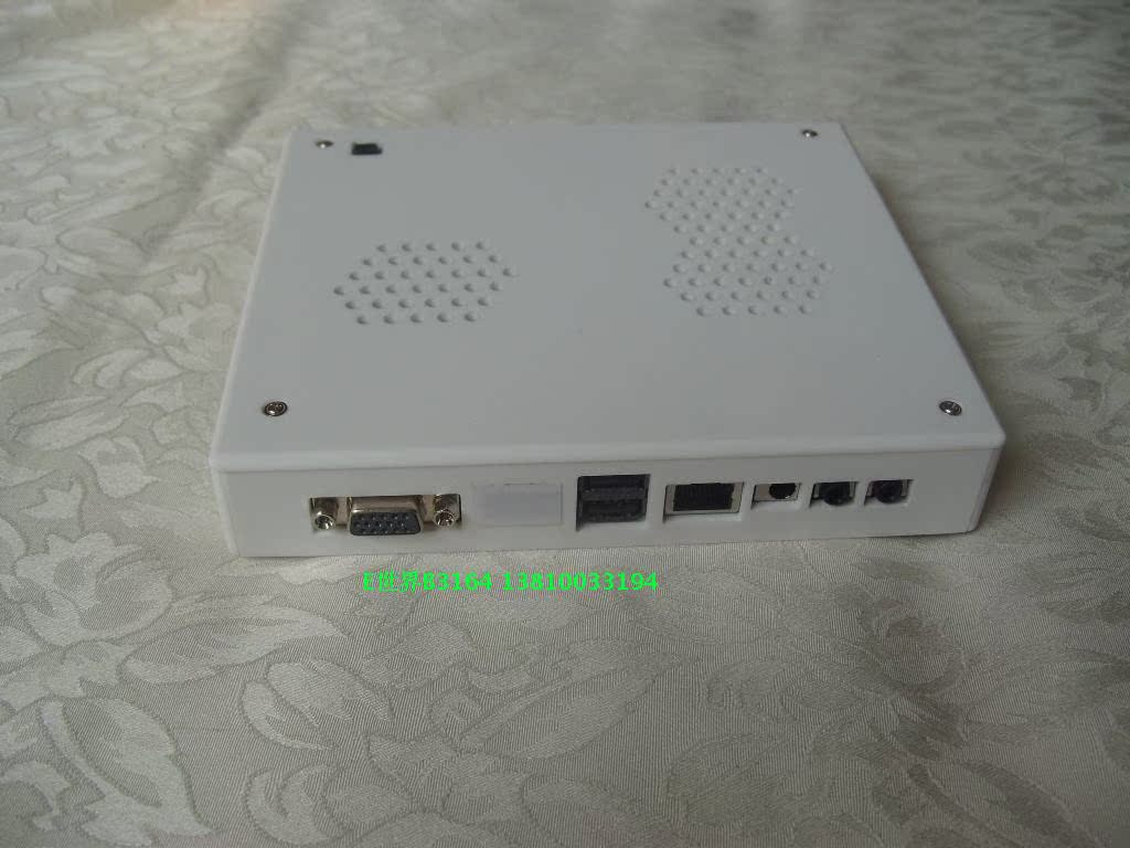 华硕原装主板,高清迷你主机,配置:Atom D510 CPU(真正双核超线程四核1.66G+1G内存+8G固态硬盘,VGA接口,
