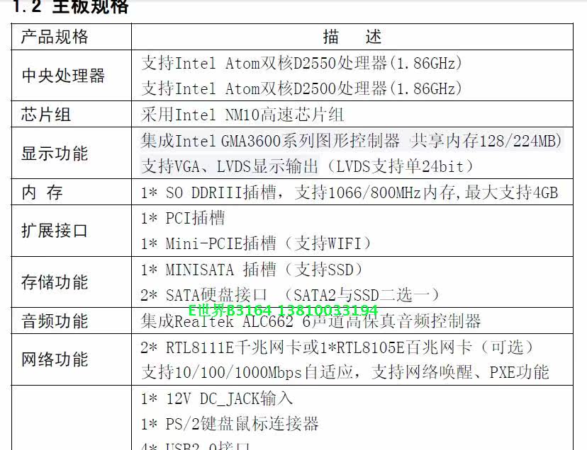 D2550/D2500双核处理器+NM10高速芯片组,1条SO DDRIII插槽,支持