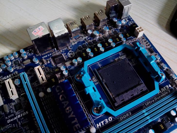 正品行货全国联保Gigabyte/技嘉GA-780T-USB3主板,全固态,带USB3.0,支持AM3+的CPU,2011年9月份的货,带将近1年半的全国联保,成色新,有挡板,另外额外赠送技嘉原装未拆封SATA线2根.不刀!成色如图 价格220元